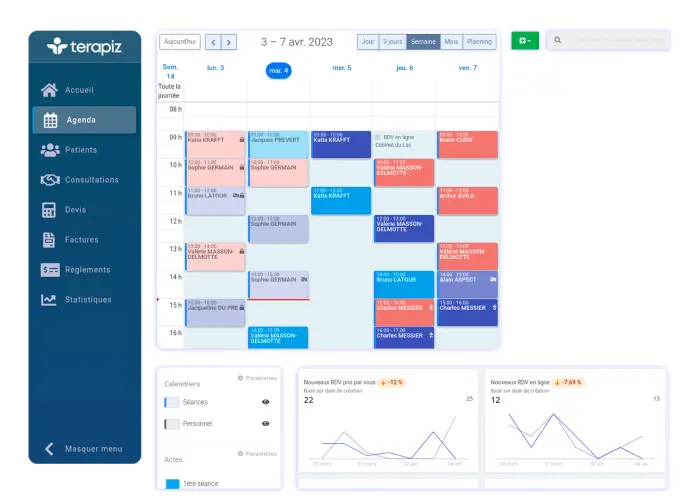 Choisis Terapiz Pro si tu veux une solution complète, sécurisée, qui centralise tout — prise de RDV, suivi des patients, communication, facturation — le tout dans une interface personnalisée.
